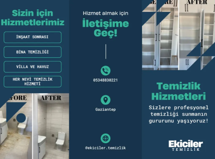 Gaziantep Şahinbey’de Profesyonel Temizlikte Güvenin ve Kalitenin Adı: Ekiciler Temizlik Şahinbey’de temizlik denilince akla gelen ilk isim olan Ekiciler Temizlik, bireysel ve kurumsal tüm alanlarda profesyonel hizmet sunan, güvenilir ve tecrübeli bir temizlik firmasıdır. Kurulduğu günden bu yana kaliteyi ve müşteri memnuniyetini ilke edinen Ekiciler Temizlik, temizlik sektörüne kazandırdığı sistemli çalışma anlayışıyla Şahinbey’de öncü bir konumda yer almaktadır. Ev temizliğinden ofis temizliğine, inşaat sonrası